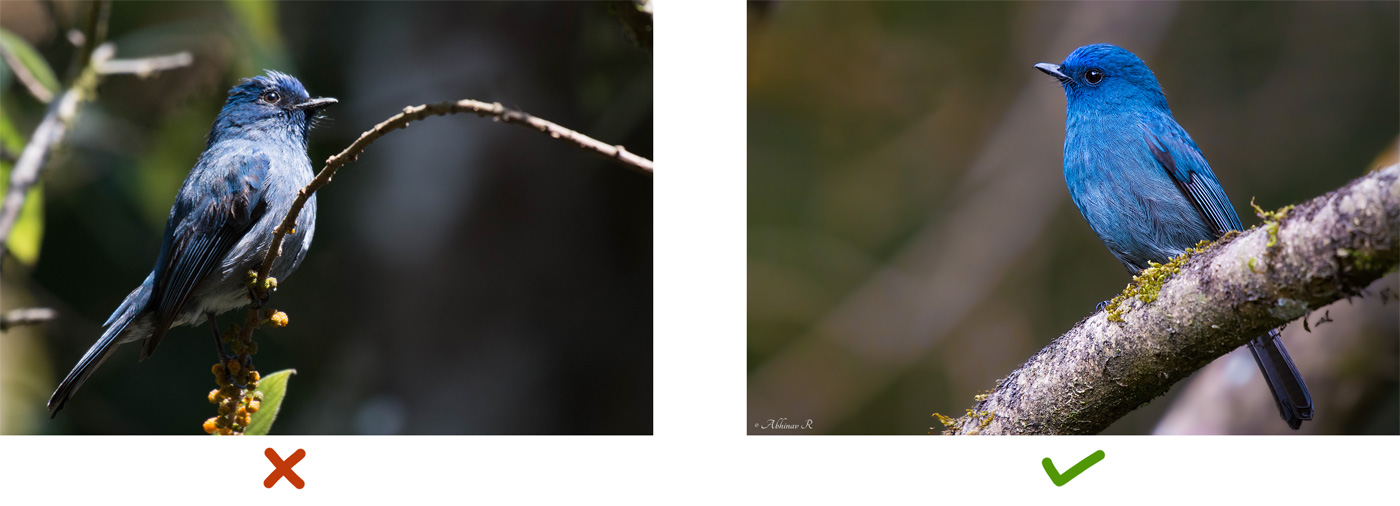 From the above two images of an endemic Nilgiri Flycatcher, it is clear how light can make or break a photograph.