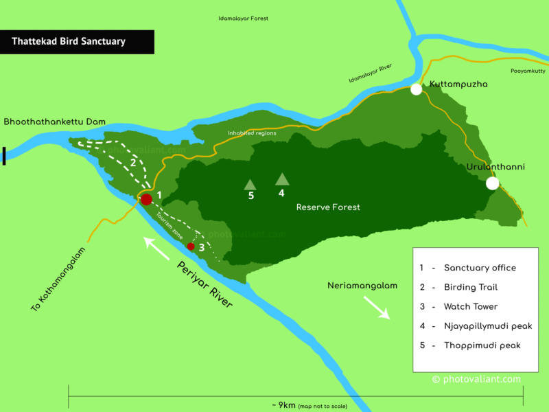 Since it is just a 2-hour drive from Kottayam, I am a frequent visitor here. If you are driving, from Kothamangalam, you can feel the difference, the richness, in the atmosphere once you drive past Keerampara. You start to get a vibe of Thattekad. Once you cross the bridge across the river Periyar, you are right in front of the Sanctuary gate, situated opposite to Siva Temple on the left side.