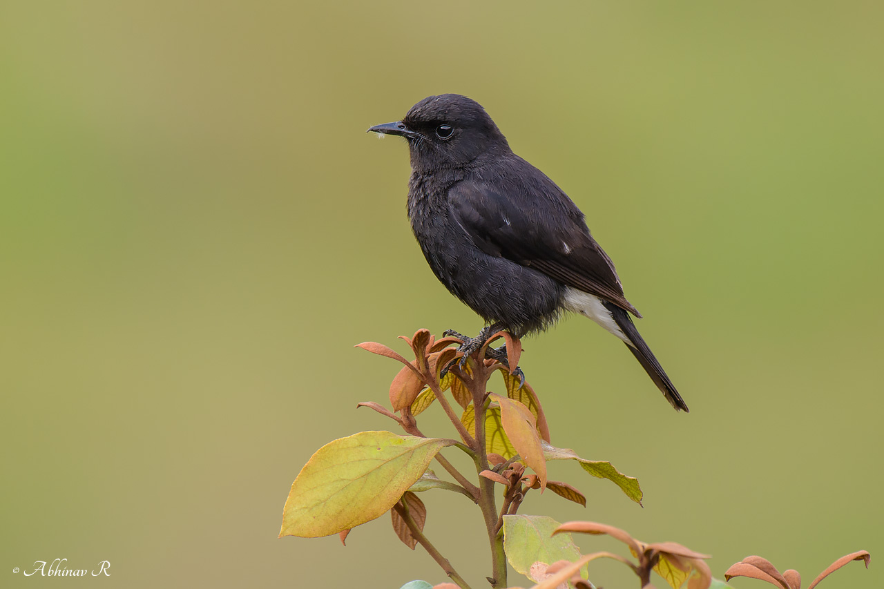 Pied Bushchat from Pampadum Shola – uncropped image, shot in raw (NEF) format, exported to JPEG, default sharpness and noise reduction settings in Lightroom – f/5.6, 1/200s, ISO-400, 500mm, Nikon D7100, Nikkor 200-500mm. Subject distance (distance from the camera to the bird) – approx. 6.7 meters.