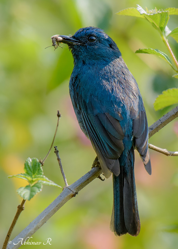 Although the bird is endemic, one can easily spot it in Munnar and Nilgiris. It is a small bird less than 15cm in length. The male is blue and female is pale blue in color. Juvenile is darker with slight yellow spots and whitish belly. The eyes and bills are black, which distinguishes it from White-bellied Blue Robin, whose eyes have orange color. Moreover shape is also different. Verditer Flycatcher (winter migratory in south) also looks similar, but is lighter blue colored. Nilgiri Flycatcher is a resident species.