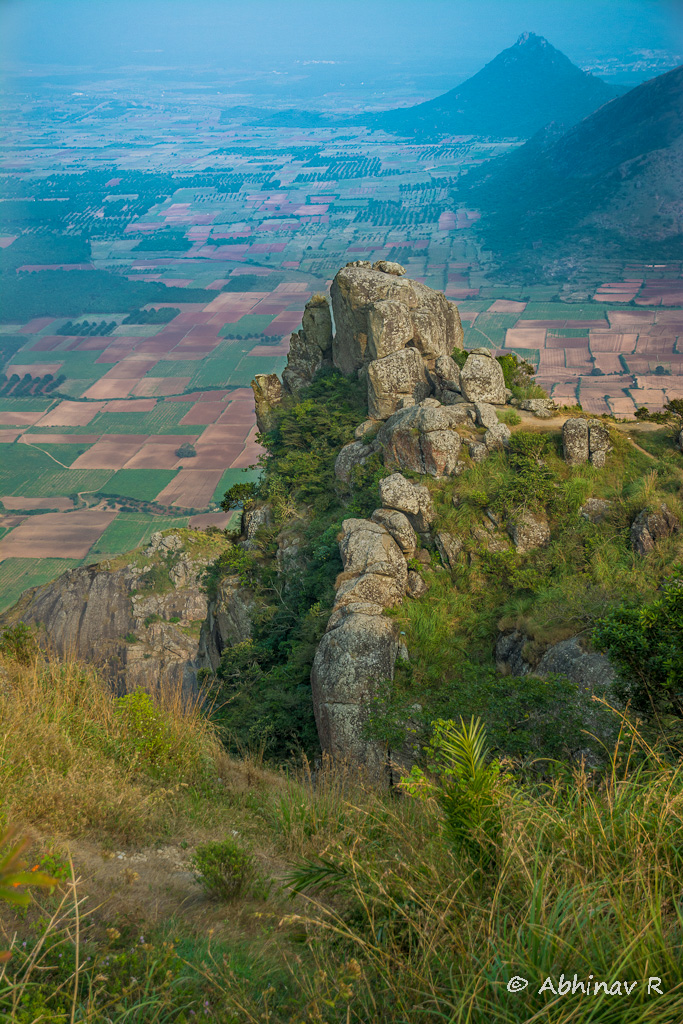 There is a small mandapa (small pavilion) behind the statue where we can sit and relax. From the hill, we can see the towns of Kombai towards the north-east, Uthamapalayam towards the east and Cumbum towards the south-east. The views are amazing during the dusk when these towns start to lit up.